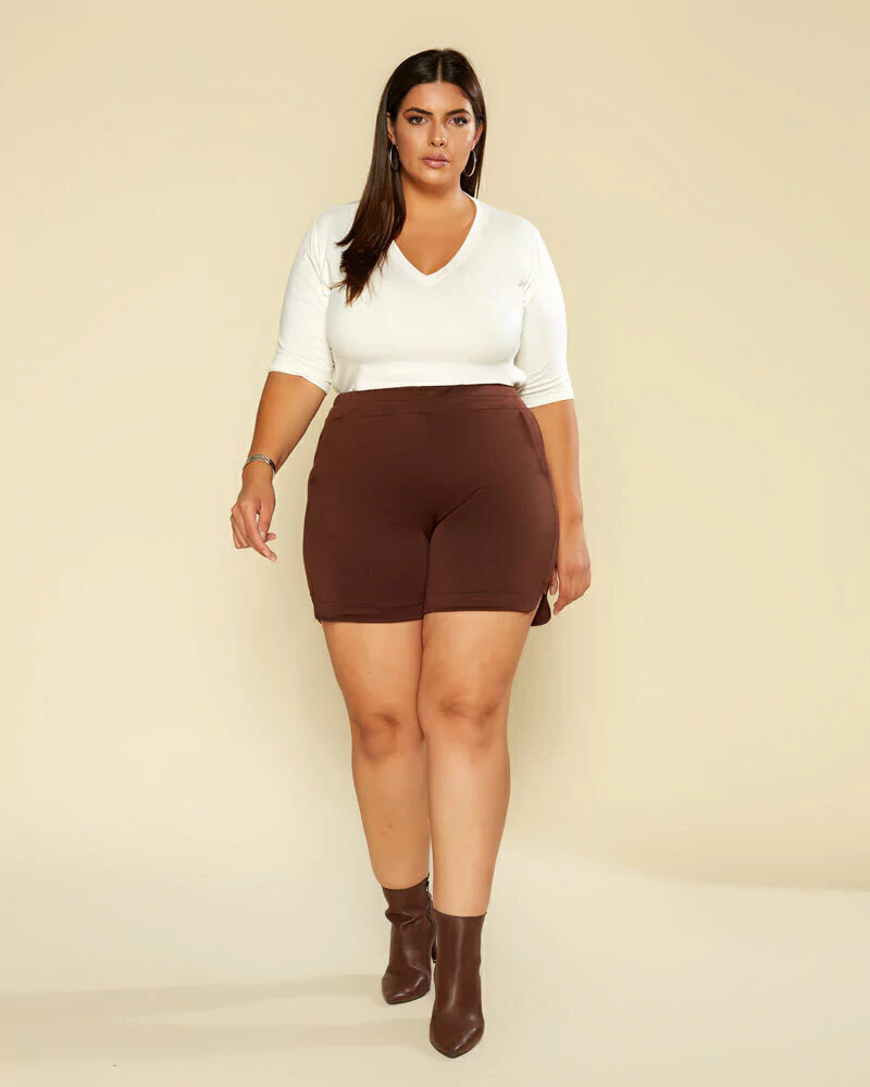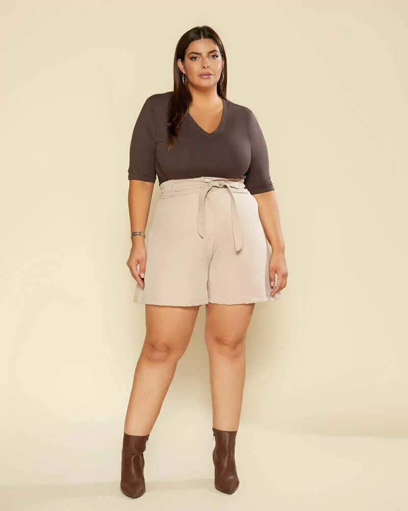 Blusa em viscolycra, com manga 3/4 e decote V.