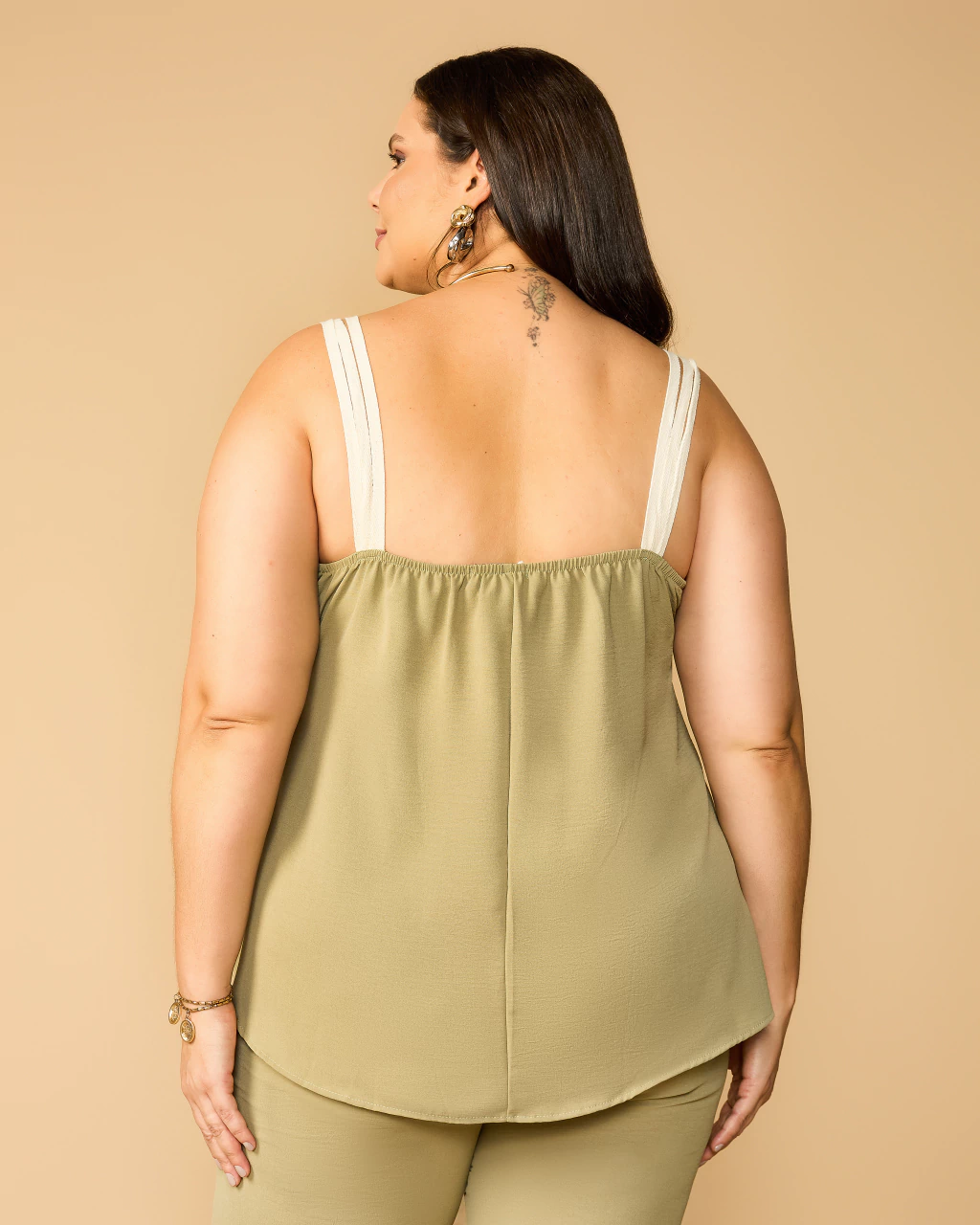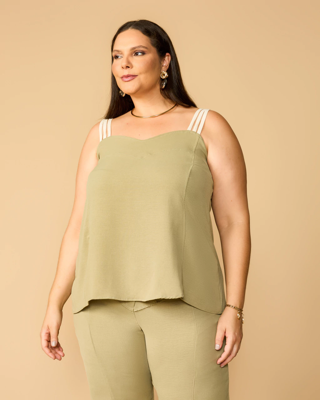 DESCRIÇÃO: Regata em Air Flow, com decote coração, detalhe de alça tripla e elástico nas costas.